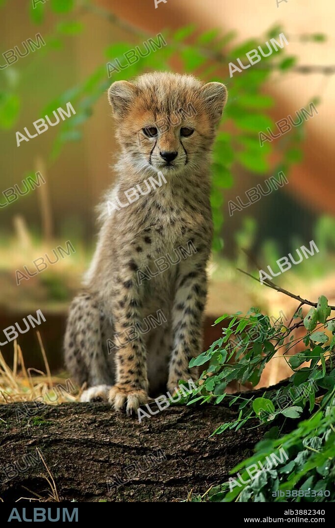 Cheetah, Sudan cheetah, (Acinonyx jubatus soemmeringii), young animal, ten weeks old, Sudan, captive, Africa.
