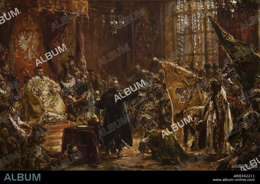JAN ALOJZY MATEJKO. Presentation of Czar Vasili Shuisky by the hetman Stanislaw Zolkiewski at the Warsaw Sejm in 1611.