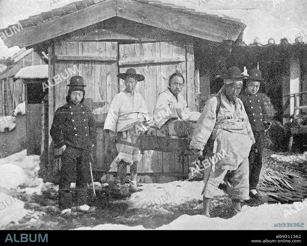 Korean Empire: Japanese magazine with the photo of Jeon Bong-Jun, 1895. A photo of Jeon Bong-joon being interrogated at the Japanese legation in Seoul was published in a Japanese magazine. Jeon Bong-jun, also called General Nokdu (green gram), gathered the people through the Donghak Peasant Movement and is a leader of the peasants who fought against the corrupt Joseon and Japanese forces.