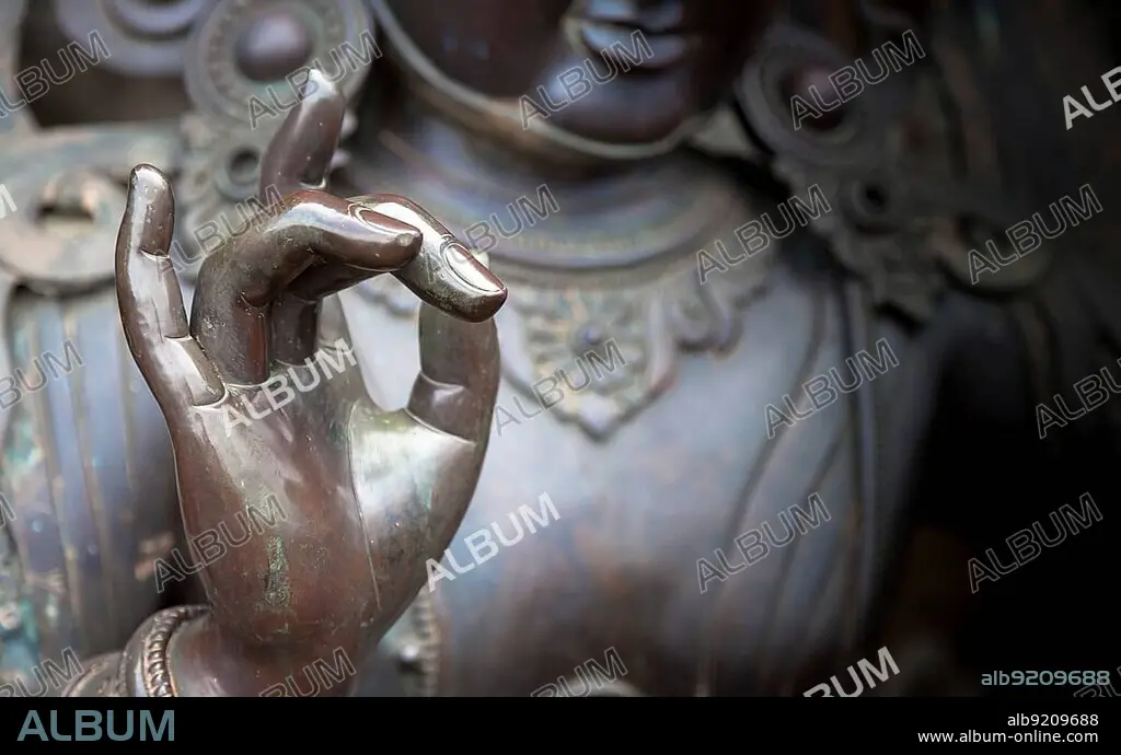 Caption: Karana mudra hand position expresses a very powerful energy with which negative energy is expelled. This hand gesture is also called warding off the evil. You can sense a very determined, focused energy just by looking at this hand gesture