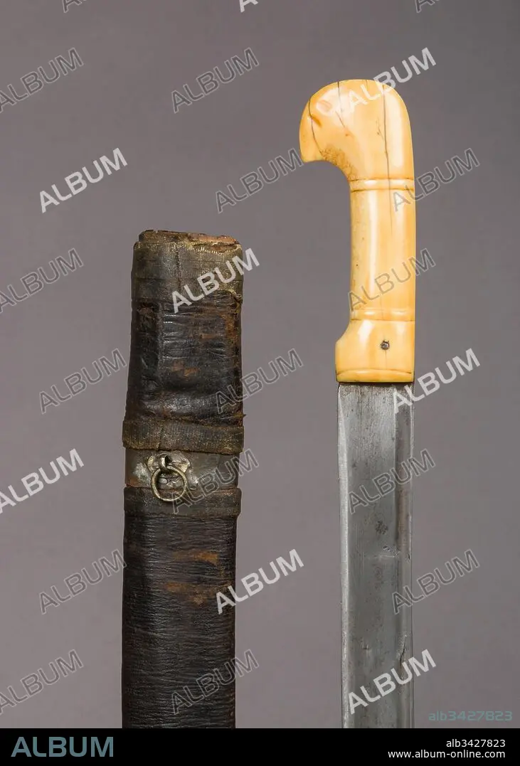 Sword with Scabbard, 19th century, Caucasian, Steel, leather, silver, ivory, wood, H. with scabbard 36 3/4 in. (93.3 cm); H. without scabbard 36 7/8 in. (93.7 cm); H. of blade 31 in. (78.7 cm); W. 2 in. (5.1 cm); Wt. 1 lb. 9.7 oz. (728.6 g); Wt. of scabbard 12.7 oz. (360 g), Swords