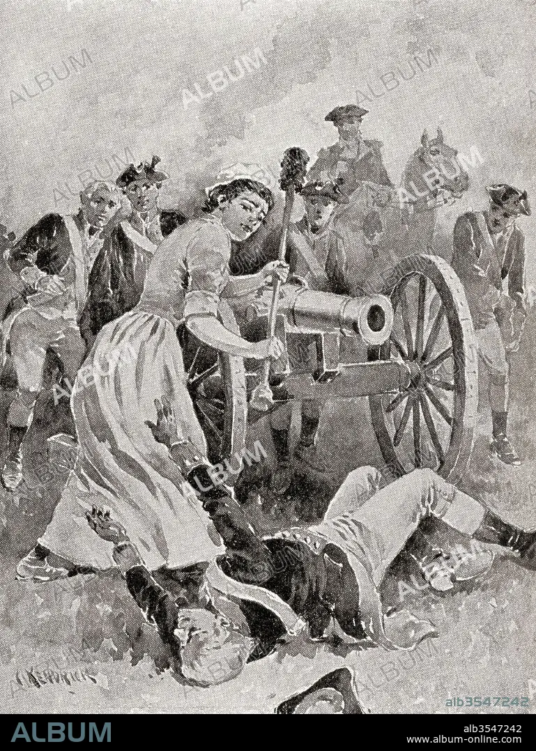 Caption: Molly Pitcher at Monmouth. Nickname of a woman said to have fought in the Battle of Monmouth, during the American Revolutionary War, generally believed to have been Mary Ludwig Hays McCauley, 1754-1832. From The History of Our Country, published 1900.