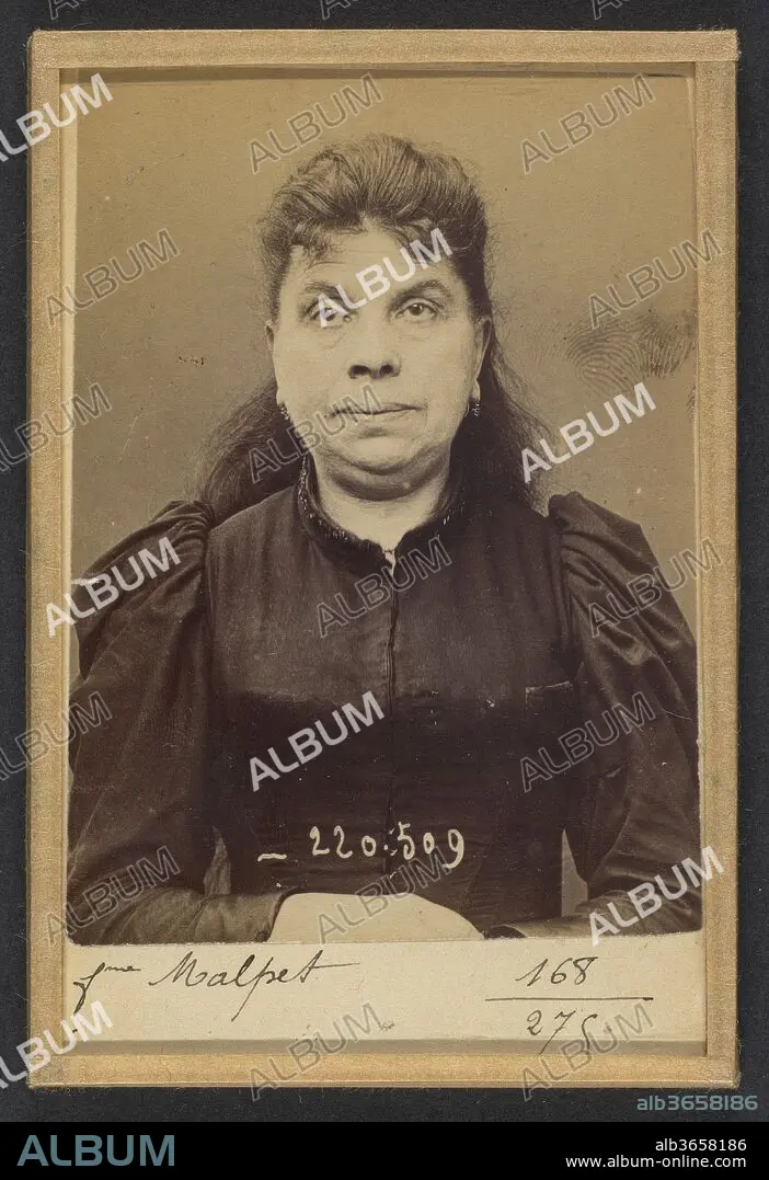 Caption: Malpet. Jeanne (femme Pivier). 51 ans, née en mai 42. Couturière. Anarchiste. 3/7/94. Artist: Alphonse Bertillon (French, 1853-1914). Dimensions: 10.5 x 7 x 0.5 cm (4 1/8 x 2 3/4 x 3/16 in.) each. Date: 1894.
