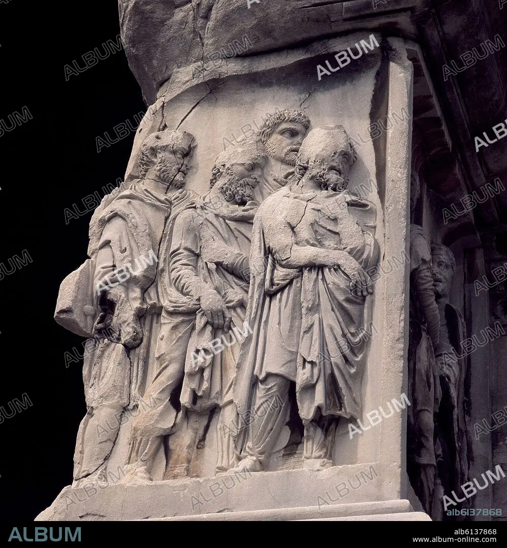 DETALLE DE LOS RELIEVES DEL BASAMENTO DEL ARCO DE SEPTIMIO SEVERO, 203 DC - FOTO AÑOS 60