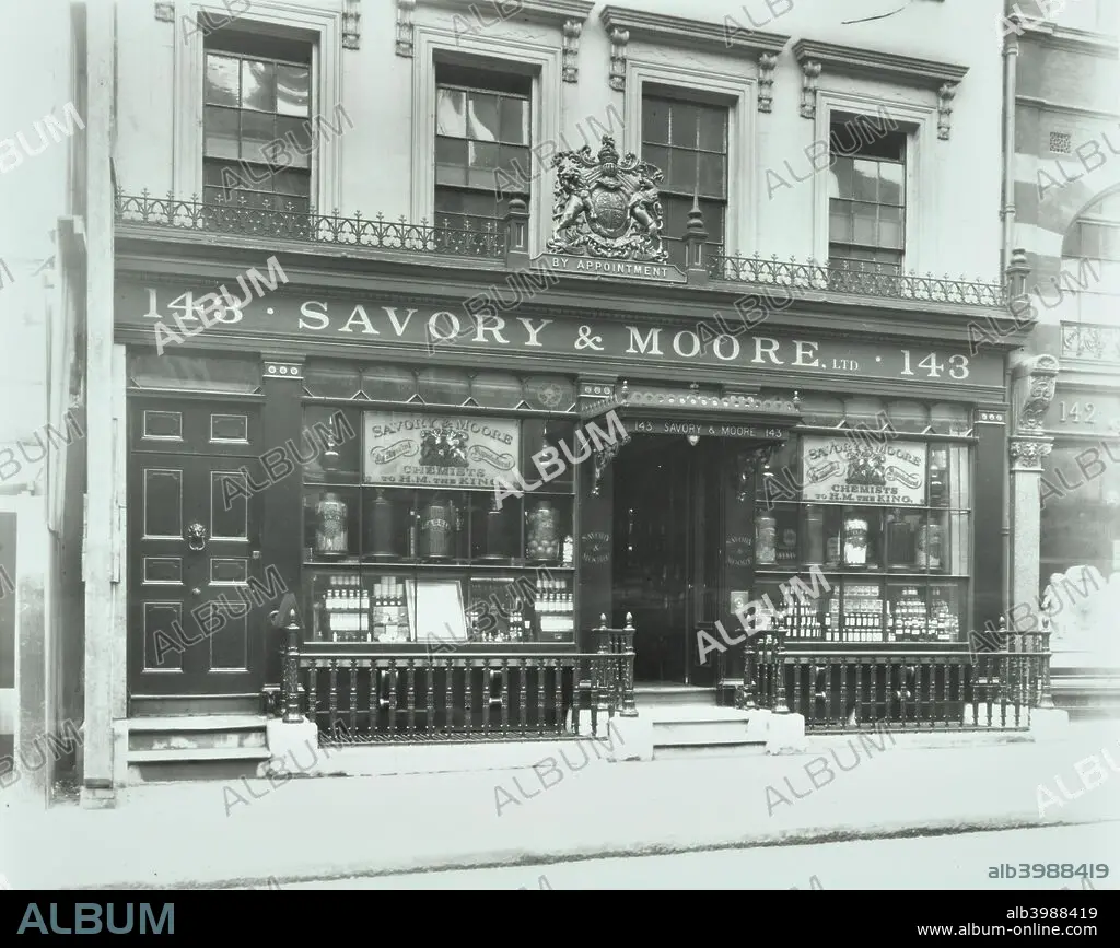 Title: Savory & Moore's Pharmacy, 143 New Bond Street, London, 1912. Artist: Unknown.