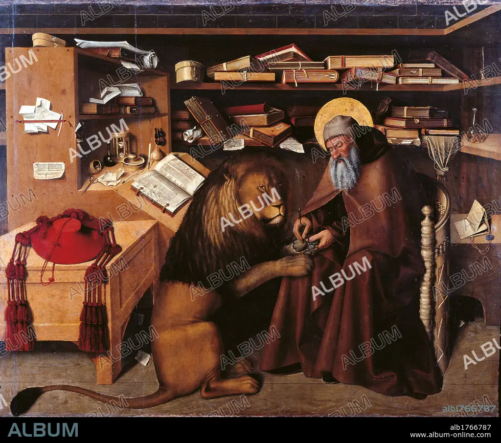 Title: St Jerome in the studio, by Colantonio, 1445 about, 15th Century, oil on panel, cm 125 x 151
