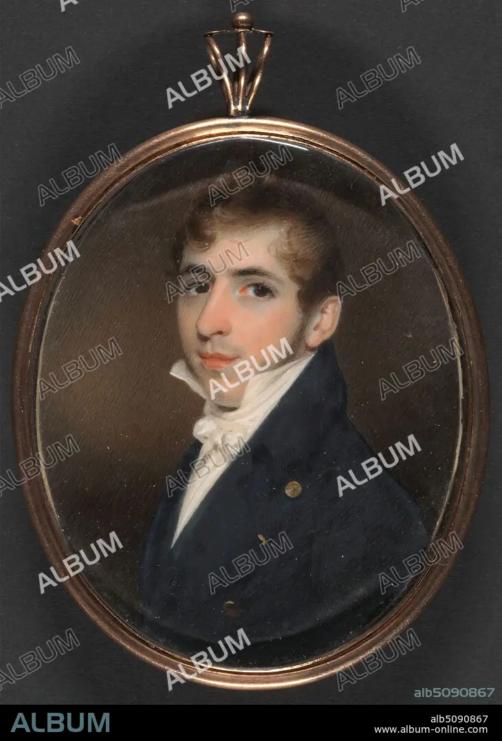 Caption: Portrait of a Gentleman Called Michael Thomas Sadler, George Chinnery, 17741852, British, undated, Watercolor and gouache on ivory, Image: 3 1/8 x 2 5/8 inches (7.9 x 6.7 cm) and Frame: 4 1/8 x 2 7/8 x 5/8 inches (10.5 x 7.3 x 1.6 cm), portrait