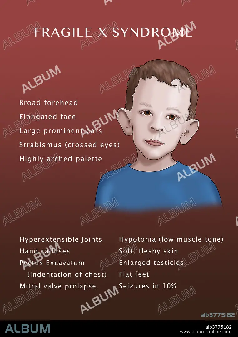 Caption: Fragile X syndrome symptoms. Illustration.