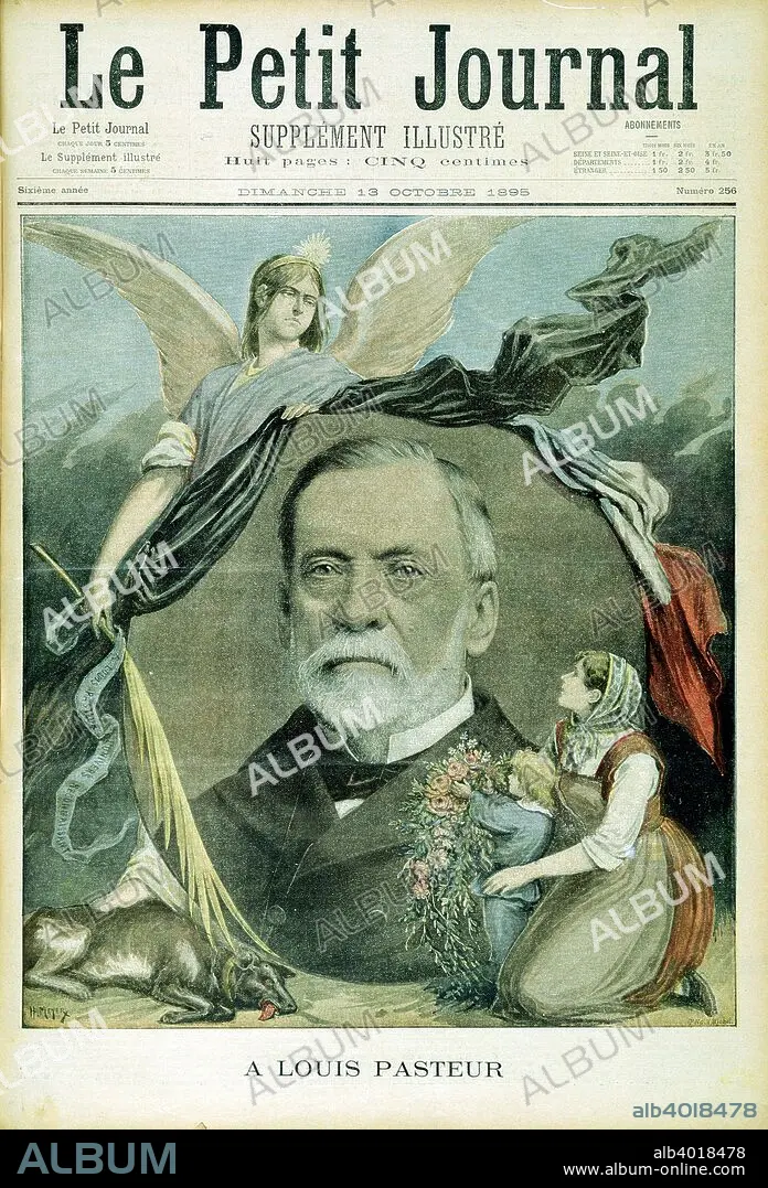 Caption: Louis Pasteur, French chemist, 1895. Pasteur (1822-1895) developed the pasteurisation process which kills pathogens in milk, wine and foods, and he produced vaccines against anthrax and rabies. In 1884 he was appointed Professor of Chemistry at the University of Lille where he researched the reasons why some alcohols turn sour, discovering in the process, that by heating liquid to a certain temperature, the bacteria were killed. Popular tribute from Le Petit Journal, Paris, at the time of his death.