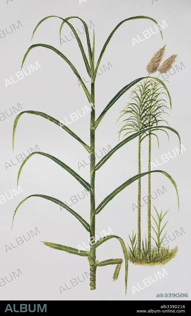 Saccharum officinarum, Sugarcane, historical illustration, 1880