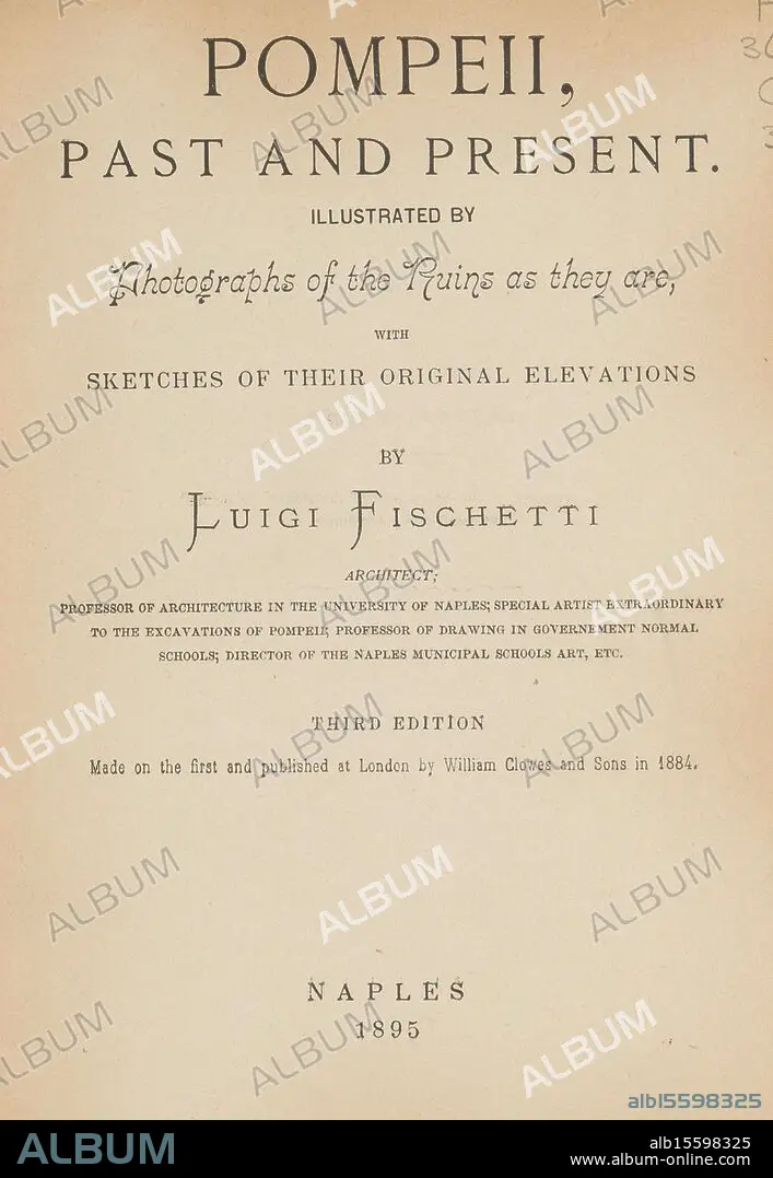 Caption: Pompeii, past and present (title on object), book, Luigi Fischetti, (mentioned on object), 1895, paper, printing, albumen print, decorated paper, height, 254 mm × width, 199 mm × thickness, 40 mm