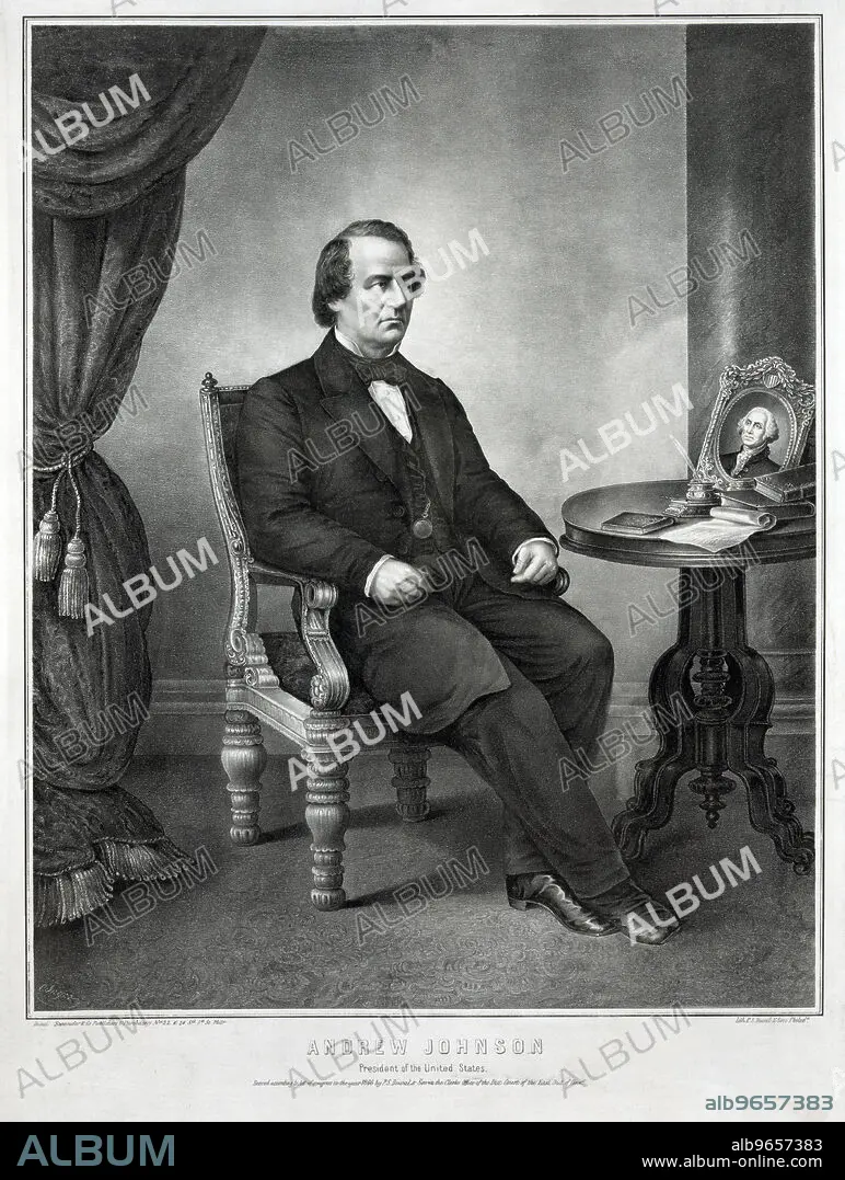 Caption: Andrew Johnson, President of the United States, Seated Portrait, Lithograph by P.S. Duval & Son, Published by Swander and Co., Philadelphia, 1866