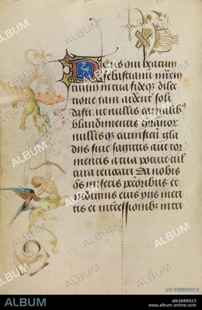 Caption: Decorated Text Page. Date/Period: 1469. Folio. Tempera colors, gold leaf, gold paint, silver paint, and ink on parchment. Height: 124 mm (4.88 in); Width: 92 mm (3.62 in).