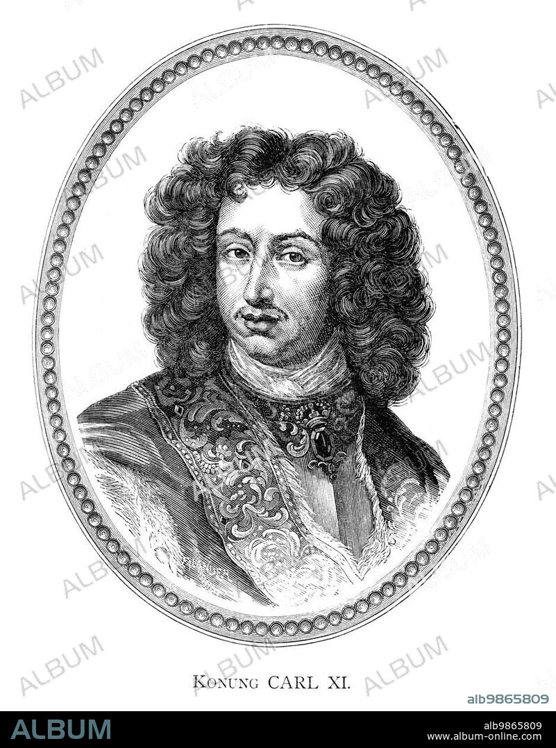 Caption: Charles XI of Sweden (Swedish: Karl XI) (24 November 1655 ? 5 April 1697) was King of Sweden from 1660 until his death, in a period in Swedish history known as the Swedish empire (1611?1718) . Engraving by Ida Falander (1842-1927), published in Starbäck, Bäckström: Berättelser ur Svenska Historien ca 1880