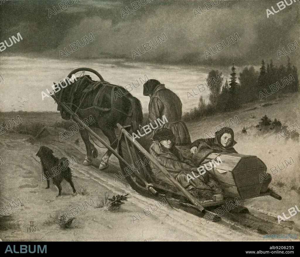 Caption: Painting artist Vasily Perov 'Journey' from the collection of the State Tretyakov Gallery, Moscow, 1865.