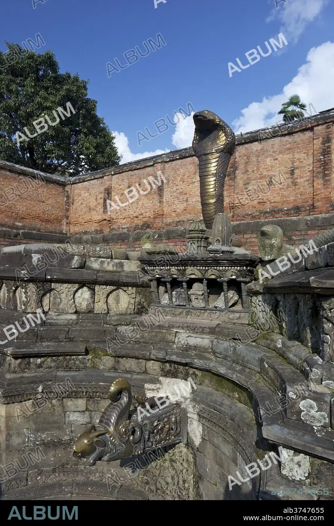 Caption: Naga Pokhari, 17th century royal baths, serpent water tank, courtyard of Royal Palace, Lu Dhawka, Durbar Square, Bhaktapur, UNESCO World Heritage Site, Kathmandu Valley, Nepal, Asia