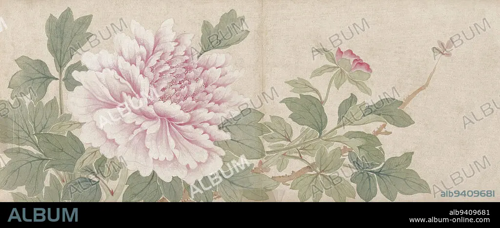 Caption: Flower Painting, late 18th century, Mianyi, Chinese, 1764 - 1815, 5 1/2 x 14 3/16 in. (13.97 x 36.04 cm), Ink and color on paper, China, 18th century, These delicate flower studies were painted by Mianyi, an imperial prince who lived in Beijing during the late eighteenth and early nineteenth centuries. The four double leaves originally formed an album that was once in the imperial collection. The frontispiece, in fact, bears the seal of the Jia Jing emperor who reigned from 1796 to 1821. Like most of the educated elite, Mianyi was well versed in classical literature, music, and calligraphy, but he excelled at painting and is best known for his flower studies, The use of color (versus ink), interest in descriptive detail, and facile technique are typical not only of Prince Chen, but of Chinese court taste in general during the eighteenth century. This album illustrates the type of amateur painting practiced among the court intelligentsia. Descriptive, technically accomplished and decorative, the aesthetic of these leaves are quite apart from the more cerebral ink landscapes of the literati tradition