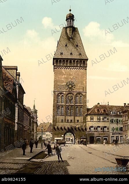 Altpörtel; the western gate of the city of Speyer; Rhineland-Palatinate; Germany; c. 1900; Historic; digitally restored reproduction of a photochromic print from the period; Europe.