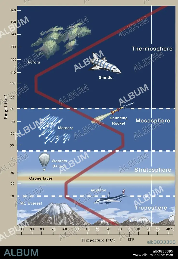 Caption: Diagram showing temperatures within the different layers of the atmosphere.