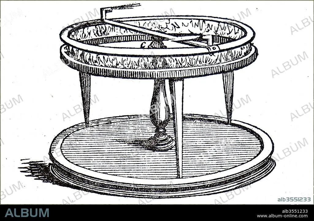 Caption: Engraving depicting an Aeolipile, a simple bladeless radial steam turbine which spins when the central water container is heated. This particular aeolipile was used by Charles Partington in his public lectures to demonstrated the power of steam. Charles Frederick Partington, a British science lecturer and writer. Dated 19th century.