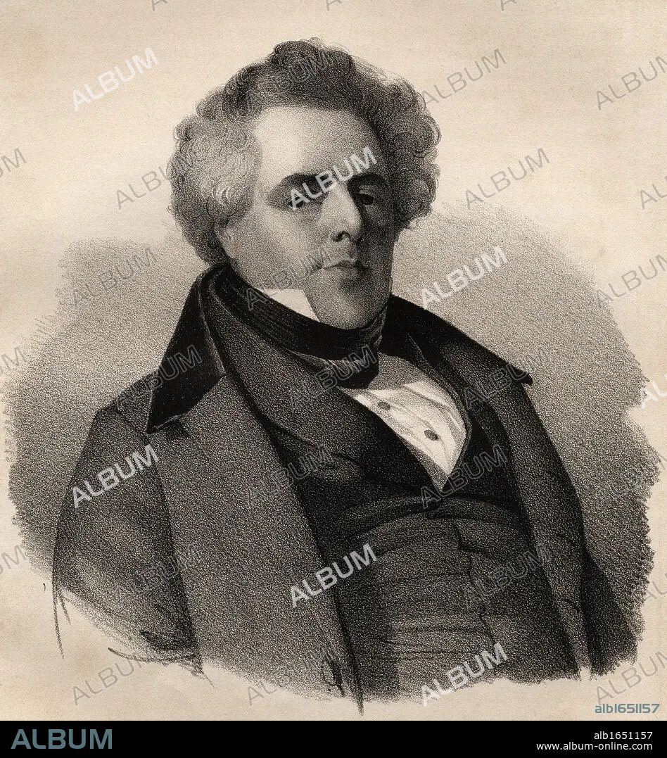Caption: Luigi Lablache, 1794-1858. French opera singer. 19th century lithograph by Em. Baerentzen & Co.From the book "Figaro. Journal of Literature,Art and Music" by Georg Garstensen. Published 1841.