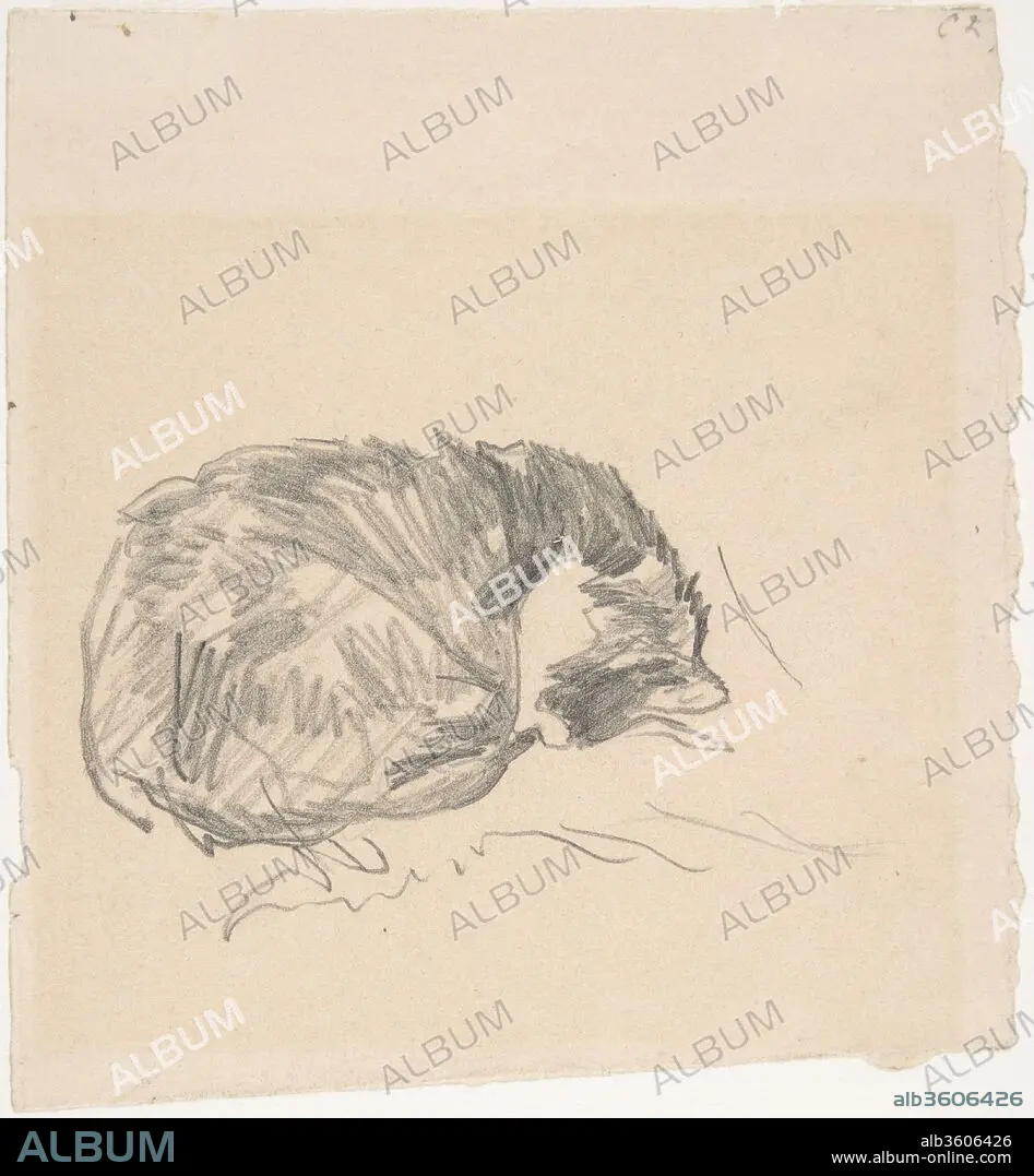 Caption: A Cat Curled Up, Sleeping. Artist: Édouard Manet (French, Paris 1832-1883 Paris). Dimensions: 4 5/8 x 4 1/4 in. (11.7 x 10.8 cm). Date: 1861.
