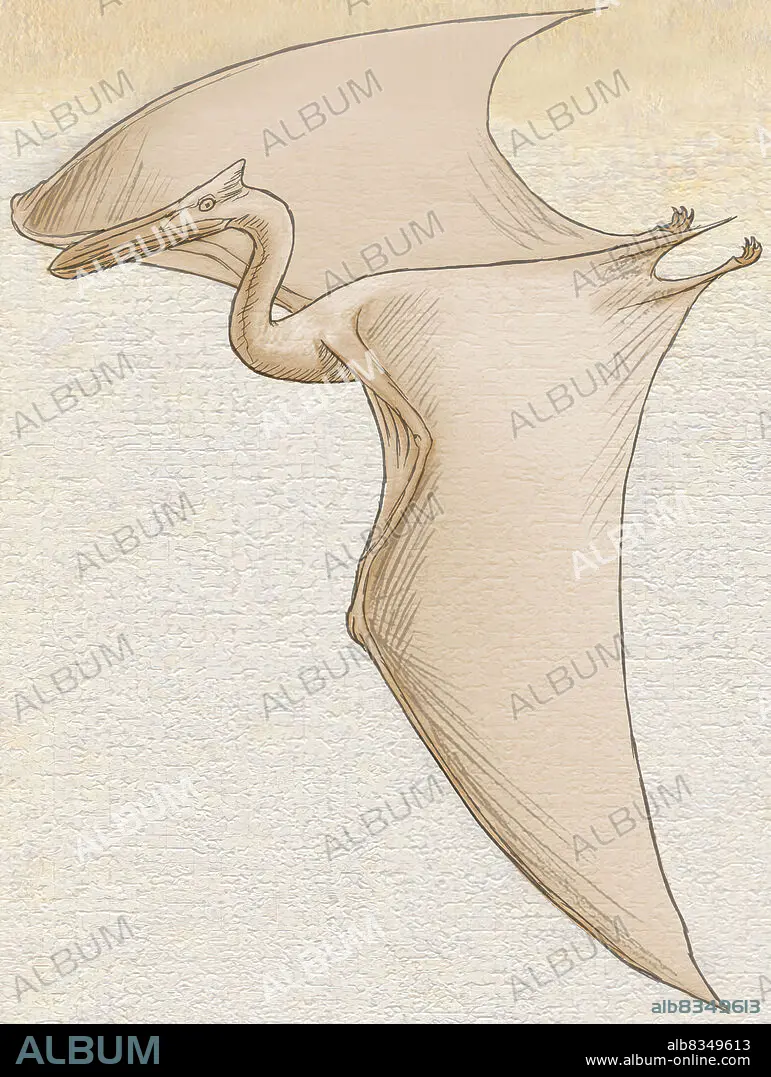 Caption: Quetzalcoatlus was a pterosaur (flying reptile) that lived in North America about 66 milllion years ago. This carnivore is considered the largest flying animal of all time. Its wings, spanning about 40 ft. (12 m) in width, made it the size of an airplane.