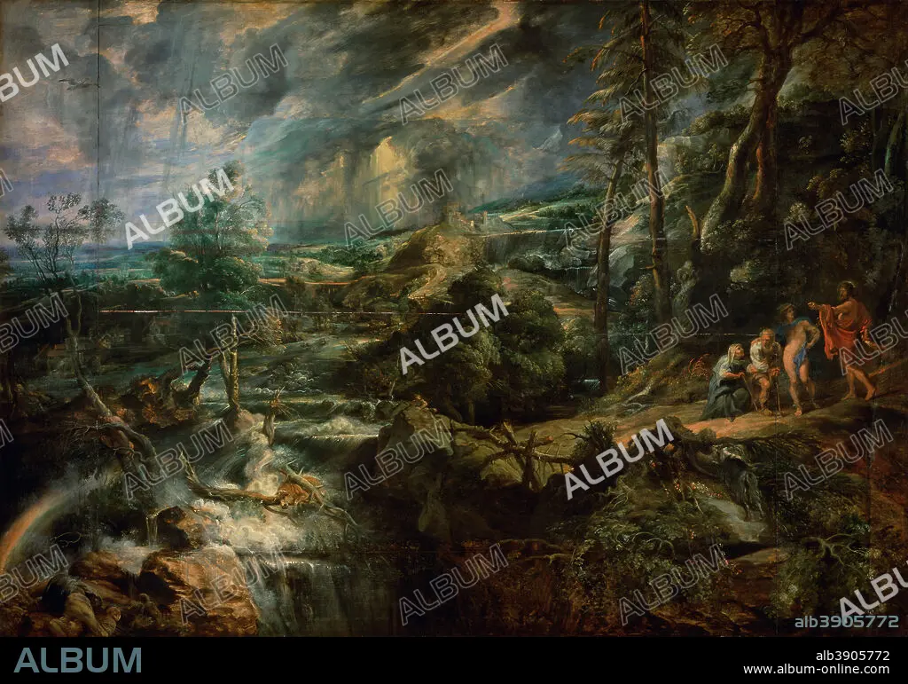 PETER PAUL RUBENS. Gewitterlandschaft mit Philemon und Baucis / Stormy Landscape with Philemon and Baucis. Date/Period: Ca. 1620-1625 (dating controversial). Painting. Oil on oak. Height: 146 cm (57.4 in); Width: 208.5 cm (82 in).
