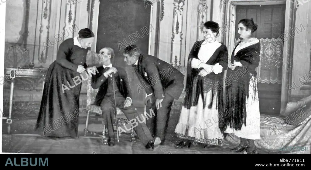May 19, 1919. Madrid. In the Comedy theater. A scene from Muñoz Seca's Sainete, "Los Planes de Milagritos", Released with happy success
