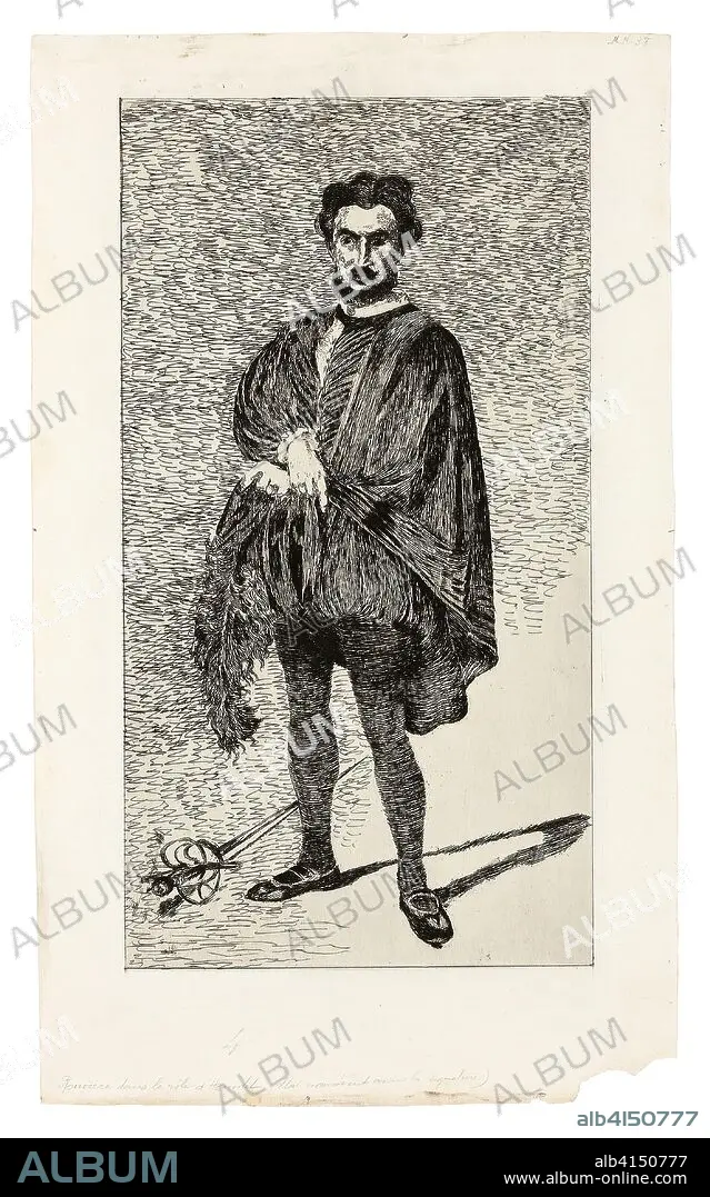 EDOUARD MANET. The Tragic Actor (Rouvière in the role of Hamlet). Édouard Manet; French, 1832-1883. Date: 1865-1866. Dimensions: 299 × 161 mm (image); 326 × 178 mm (plate); 369 × 221 mm (sheet). Etching and plate tone in black on ivory laid paper. Origin: France.