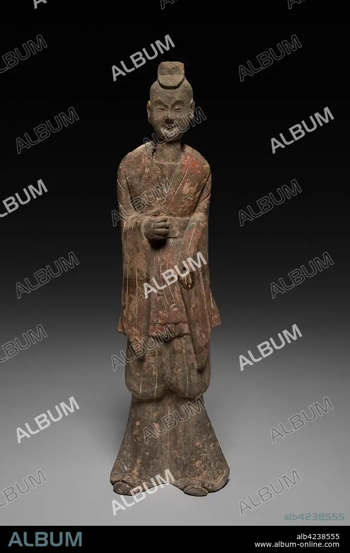 Court Official (Tomb Figure), 1st quarter of 6th Century. China, Six Dynasties period (317-581), Northern Wei dynasty (386-534). Gray earthenware with traces of polychrome; overall: 36 cm (14 3/16 in.).