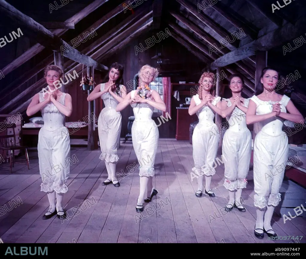 Caption: Seven Brides For Seven Brothers Film, Encyclopaedia of Film 3050, back cover. Seven Brides for Seven Brothers is a musical film released in 1954. It was directed by Stanley Donen, (born 1924) with music by Saul Chaplin and Gene de Paul, and lyrics by Johnny Mercer.