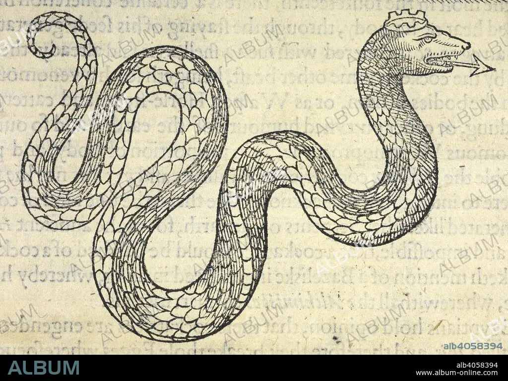 Caption: A snake or serpent wearing a crown. The Historie of Serpents, or, the second Booke of living Creatures, etc. London : W. Jaggard, 1608. Source: 435.h.8 page 119.