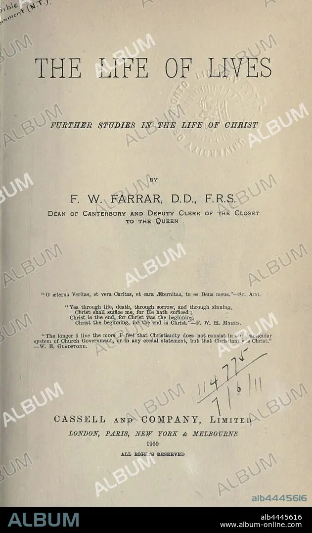Caption: The life of lives, further studies in the life of Christ : Farrar, Frederic William, 1831-1903