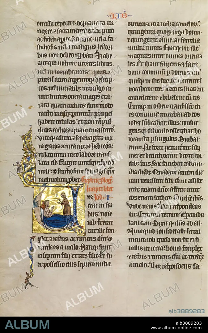 Caption: Initial V: Job Derided by His Wife. Date/Period: Ca. 1270. Folio. Tempera colors, black ink, and gold leaf on parchment. Height: 470 mm (18.50 in); Width: 322 mm (12.67 in).