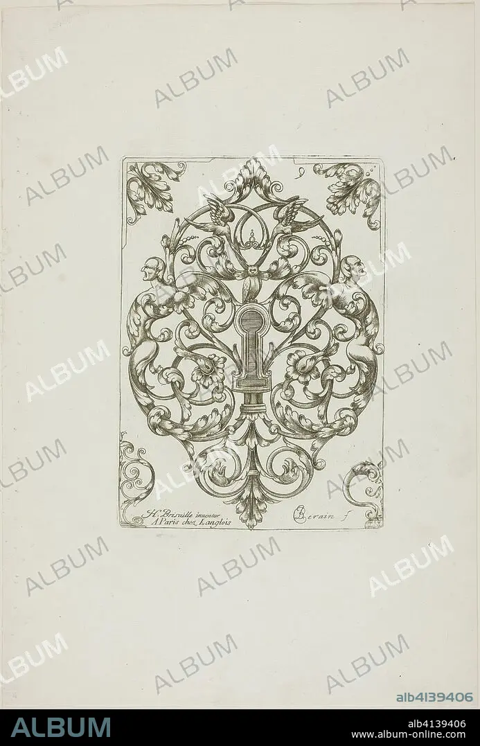 Caption: Designs for Locksmiths. Jean Bérain I (French, 1640-1711); after Hugues Bris e Ville (French). Date: 1660-1711. Dimensions: 169 × 120 mm (image/plate); 316 × 215 mm (sheet). Etching on paper. Origin: France.