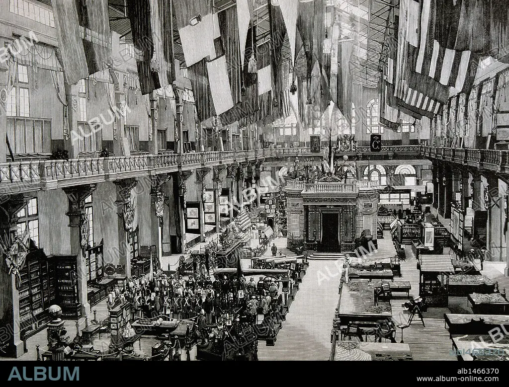 Spain. Barcelona. 1888 Universal Exposition. Central gallery of the Palace of Industry. Engraving in "'The Spanish and American Illustration".