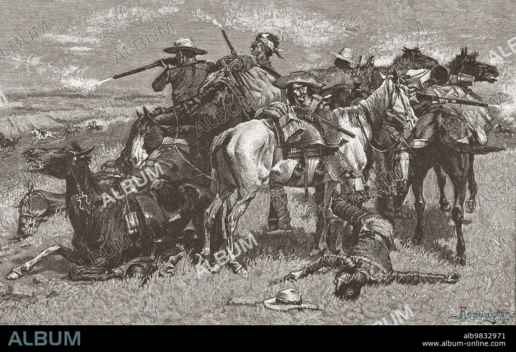 Caption: Cabeca de Vaca in the desert. The Great Explorers. Álvar Núñez Cabeza de Vaca. After a work by American artist Frederic Sackrider Remington, 1861 1909. This picture is number one in Remington's Great Explorers series of 1905.