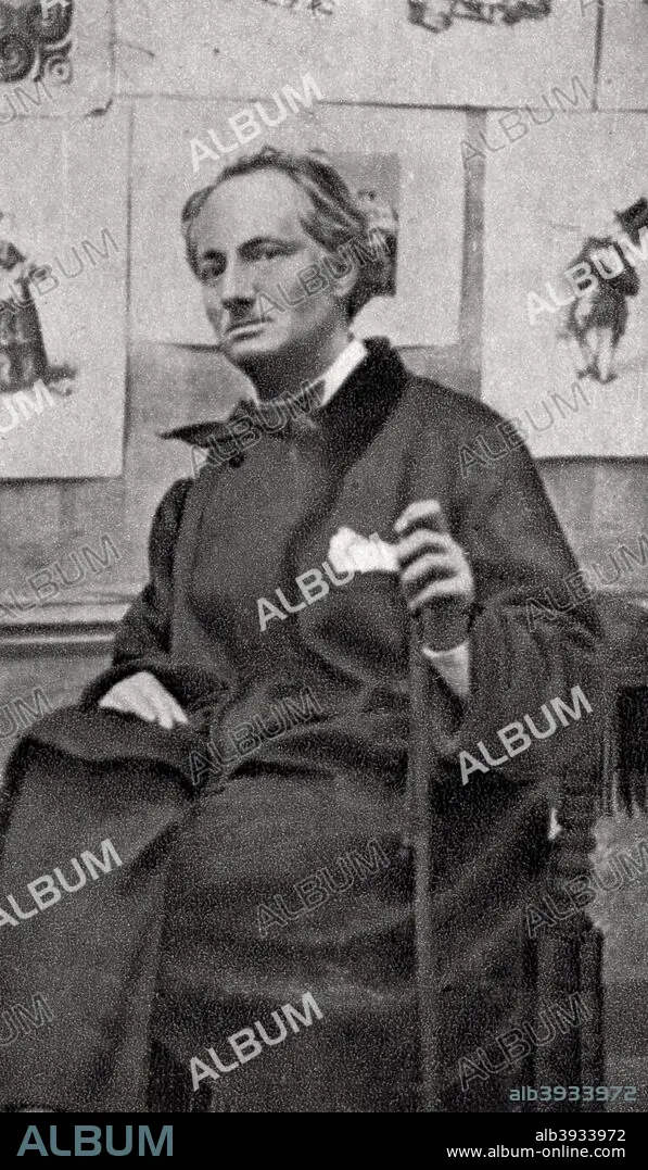 Caption: Charles Baudelaire, French poet and art critic, 1857. Baudelaire (1821-1867) was an influential but controversial Symbolist poet who was interested in satanism and the macabre. His book of poems, Les Fleurs du Mal (The Flowers of Evil) (1857) is regarded as one of the classics of French literature. A photograph from Album de Photographies dans L'Intimite de Personnages Illustres, 1860-1905, 3rd album, Editions MD, Paris.