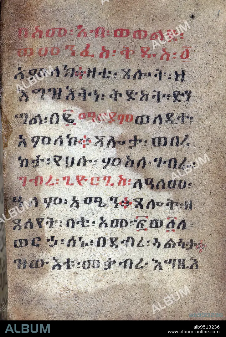 Illuminated Manuscript, Two Ethiopian Prayer Books copied together, Prayer of Mary at Mount Golgotha, This small, undecorated manuscript was written in Gz, the liturgical language of the Ethiopian Orthodox Church, and was copied for Gäbrä Giyorgis. Although it has long been considered to be a work of the sixteenth century, the scribe's hand suggests a later date, perhaps in the eighteenth century. The date 1308AH/1890-91CE, given on the verso of the second flyleaf could be for the Arabic notes of the two leaves. Evidence of its long life and variety of users comes in the form of notes scribbled on the flyleaves, with Arabic in two hands covering the front two flyleaves and notes in French and English on the back flyleaf.