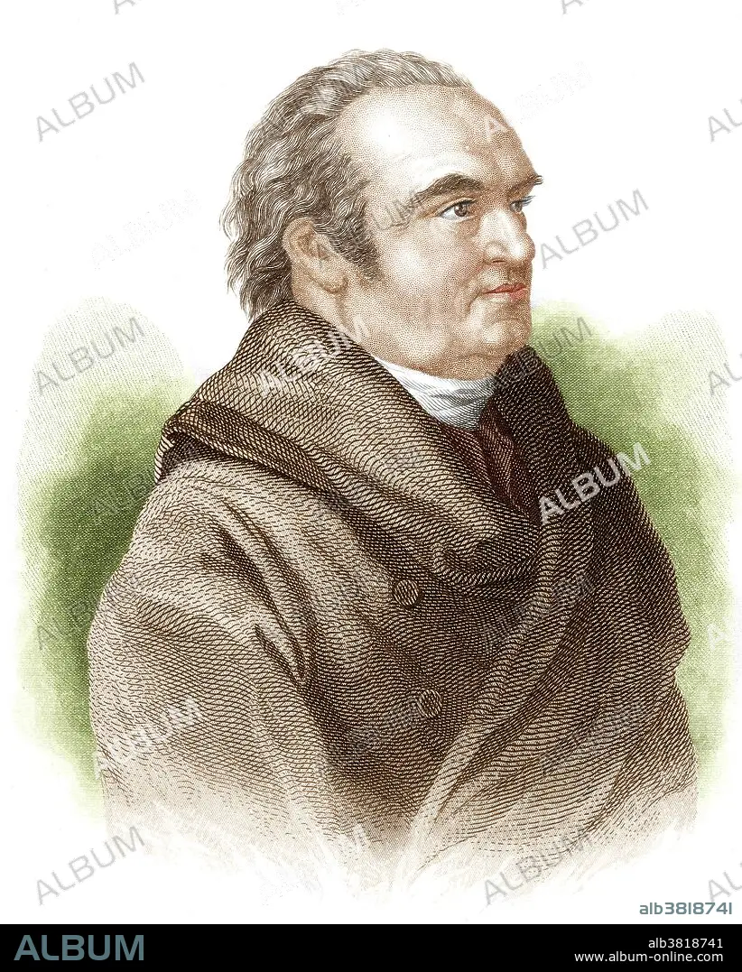 Caption: Frederick William Herschel (November 15, 1738 - August 25, 1822) was a German-British astronomer, technical expert, and composer. Born in Hanover, Germany, he emigrated to England at age 19. His music led him to an interest in mathematics and lenses. His interest in astronomy grew and he started building his own reflecting telescopes. During the course of his career, he constructed more than four hundred telescopes. The largest and most famous of these was a reflecting telescope with a 49 inch-diameter primary mirror and a 40-foot focal length. He became famous for his discovery of the planet Uranus, along with two of its major moons (Titania and Oberon), and also discovered two moons of Saturn. From 1782 to 1802, and most intensively from 1783 to 1790, Herschel conducted systematic surveys in search of deep sky or non stellar objects. Excluding duplicated and lost entries, he ultimately discovered over 2400 objects defined by him as nebulae. In addition, he was the first person to discover the existence of infrared radiation. He is known, as well, for the twenty-four symphonies that he composed. He died in 1822 at the age of 83.