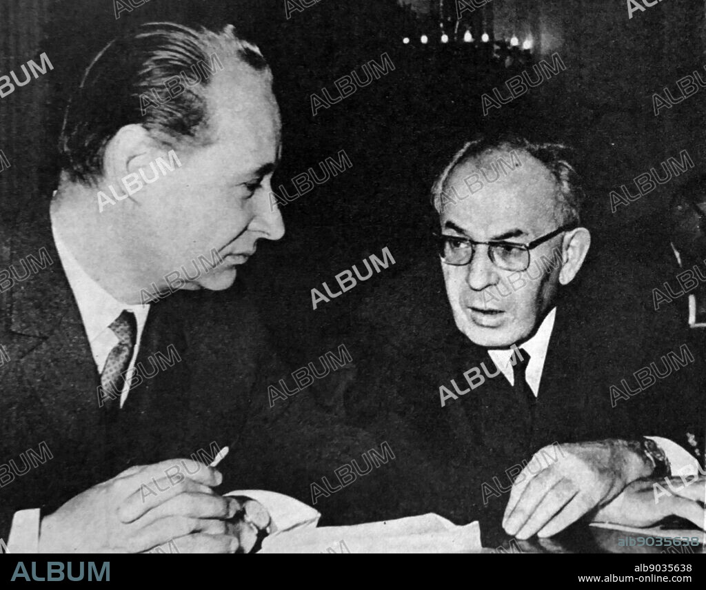 Photograph of Alexander Dubcek with Gustáv Husák. Alexander Dubcek (1921-1992) a Slovak politician and, briefly, leader of Czechoslovakia. Gustáv Husák (1913-1991) a Slovak politician, president of Czechoslovakia and a long-term Secretary General of the Communist Party of Czechoslovakia. Dated 20th Century