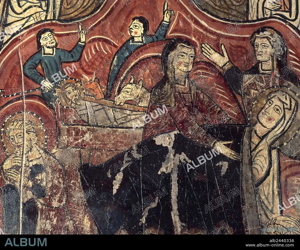 Romanesque. Spain. Aragon. Nativity. Altar frontal of St. Mary's church. Iguacel. Tempera on wood. 12th century. Diocesan Museum of Jaca.