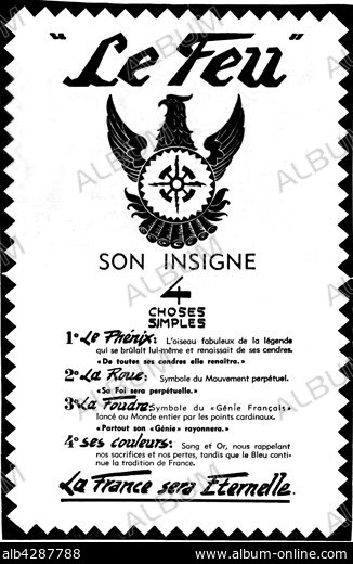 Caption: Poster of the movement called 'Le Feu' (the Fire), launched in September 1940 by Maurice Delaunay (the only member of Parliament who was against the declaration of war on Germany in September 1939).. France - World War II. 1940-1944