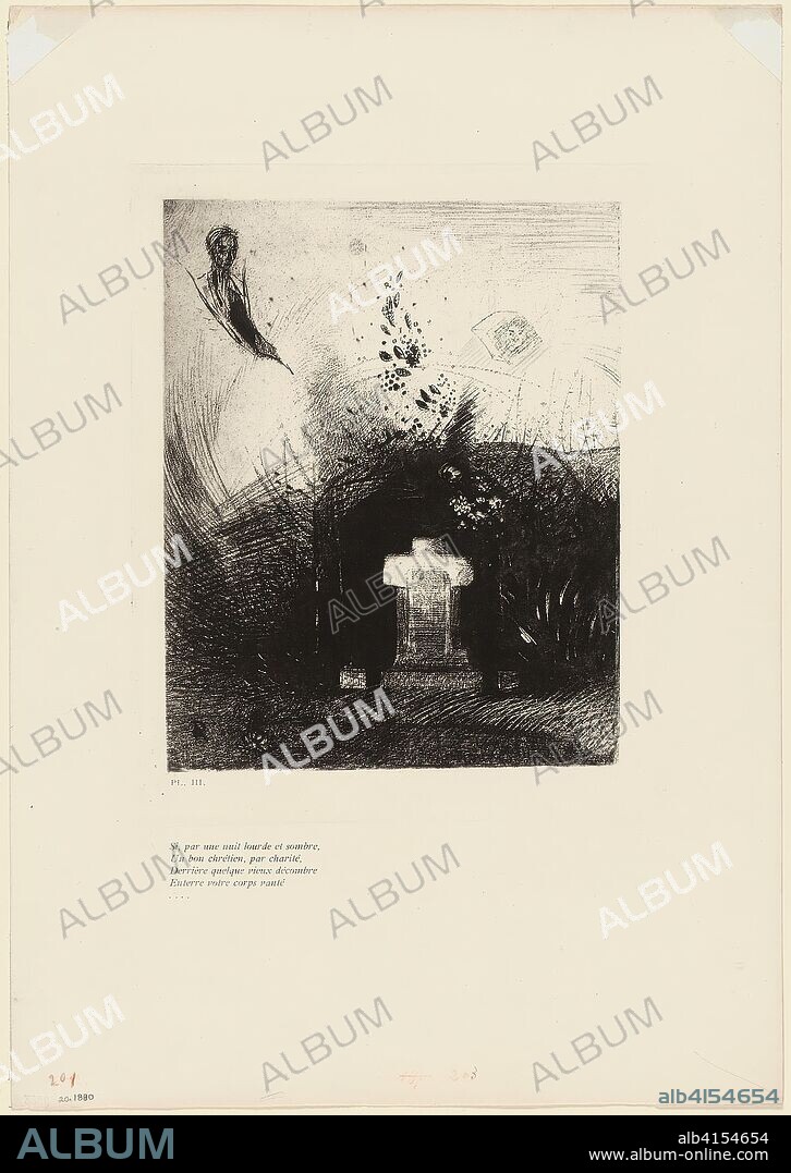 If On a Close Dark Night a Good Christian, Out of Charity, Behind Some Old Ruin, Buries Your Arched Body, plate 4 of 9. Odilon Redon; French, 1840-1916. Date: 1890. Dimensions: 266 × 210 mm (plate); 445 × 312 mm (sheet). Photogravure made from an original drawing, in black on ivory wove paper. Origin: France.