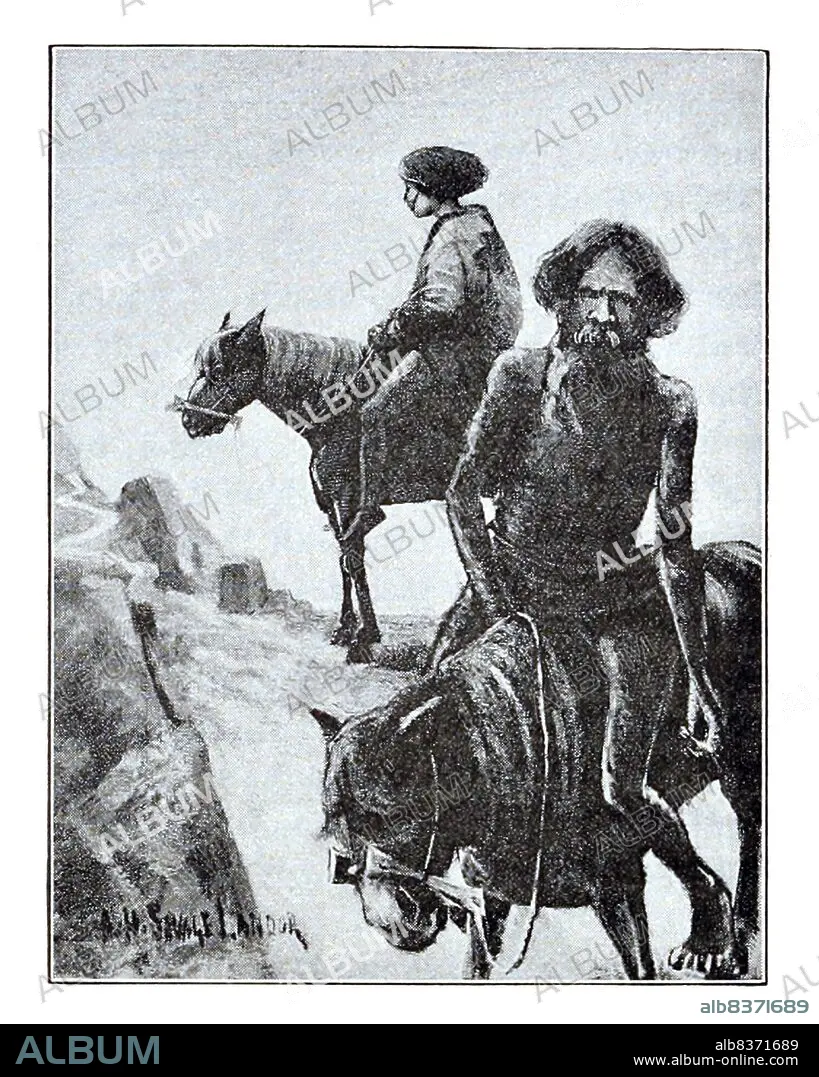 Japan: 'Ainu Man and Woman on Horseback', Hokkaido,1892. Arnold Henry Savage Landor, Alone with the Hairy Ainu< / i>, London,1893