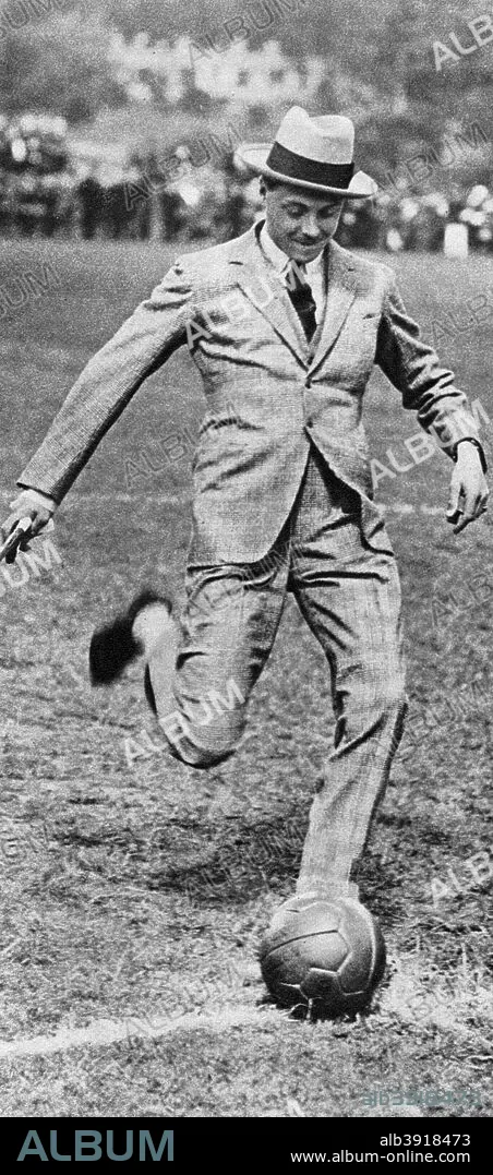 Title: The Prince of Wales kicking off the Spurs versus Fulham football match, 1921. Artist: Unknown
