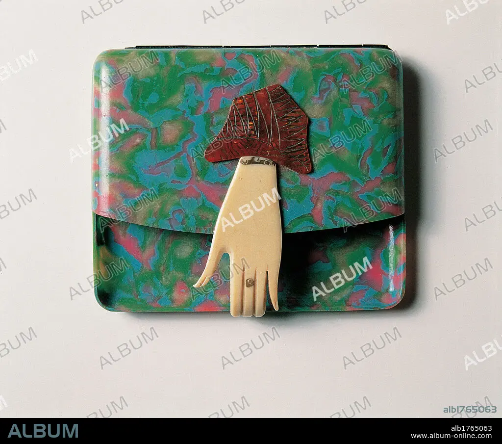 Italy, Lombardy, Milan, Montedison Collection. All. Cigarette case container plastic celluloid bag hand colors design green. Please remember that author's rights have to be cleared for modern and contemporary works of arts.
