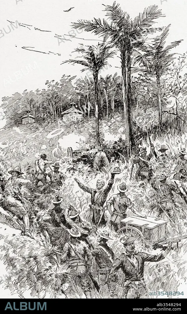 The Battle of Las Guasimas, Cuba, June 24, 1898, the first land engagement of the Spanish–American War