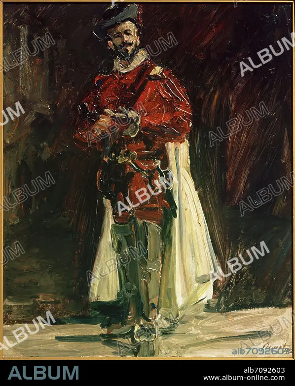 Caption: Wolfgang Amadeus Mozart; 1756-1791. Works: Don Giovanni (Opera, UA 1787). - "Francisco d'Andrade as Don Giovanni". - (Character picture of the Portuguese baritone Francisco d'Andrade, 1859-1921, in the title role). Painting, 1912, by Max Slevogt (1868-1932). Oil on mahogany, 56 × 46.5 cm. Inv. No. HK-2921. Hamburg, Kunsthalle.